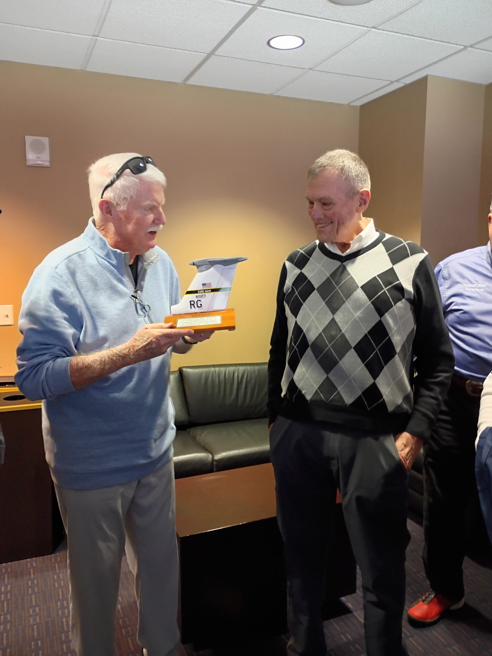 We had a good turnout on Sunday to watch the Allen Americans hockey team defeat the Tulsa Oilers at the Allen Events Center. Thx to Bob Epstein for donating the suite he won at our golf tournament and to Joel for organizing the event. We took the opportunity to resent Bob G with his long-awaited C-141 trophy for his contribution as our 2025 president. And because it was “Pucks and Paws” day, we got to see some (mostly) well-behaved pooches!